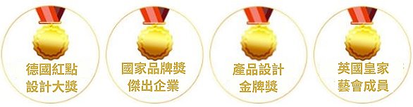 德國紅點、iF設計獎、紐約設計獎、倫敦設計獎、法國設計等國際大獎。